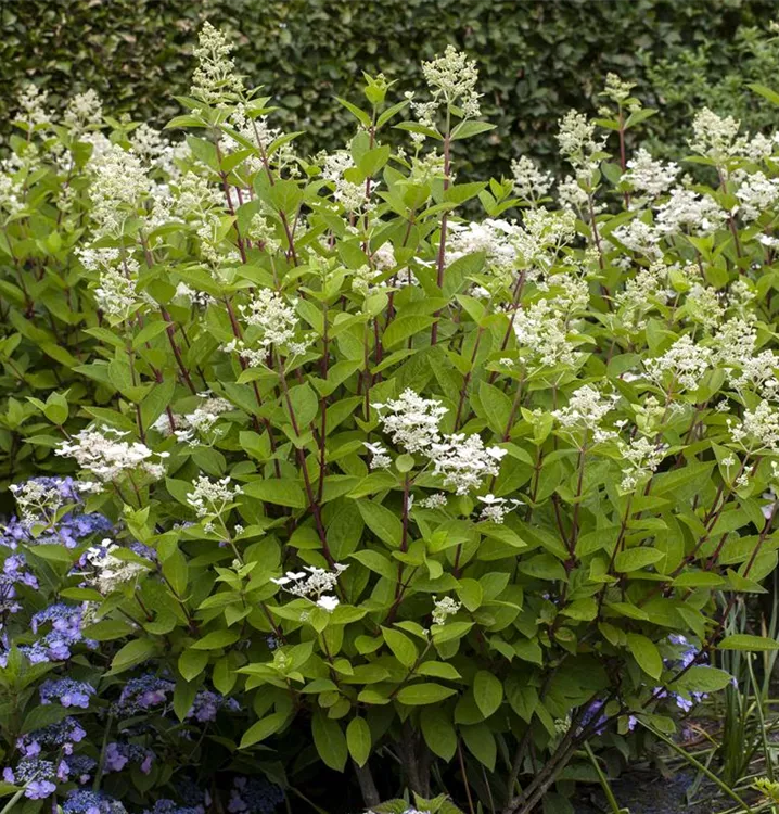 Duftender weißer Blütenstand verfärbt sich rosa und dann Bodeauxrot. Standfest und 2-3m hoch.