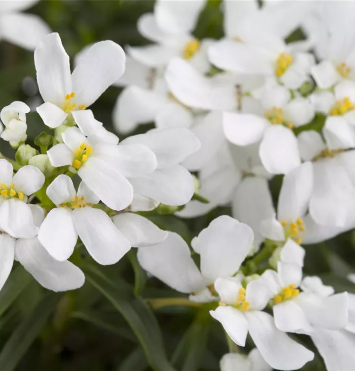 Die Immergrüne Schleifenblume 'Appen-Etz' (Iberis sempervirens) ist eine flache, polsterbildende immergrüne Staude, die von April bis Mai weiße, in Dolden angeordnete Blüten bildet. An einem sonnigen Standort mit durchlässigem, nährstoffreichem Boden erreicht sie gewöhnlich eine Höhe von ca. 30 cm und wird ca. 40 cm breit. Die Immergrüne Schleifenblume 'Appen-Etz' ist gut frostverträglich.