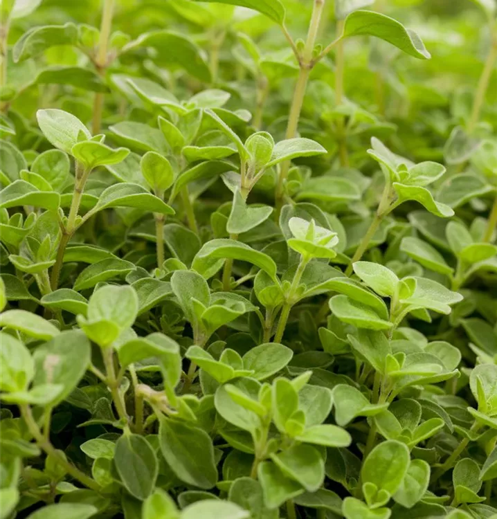 Zum Verzehr geeignet. Die wintergrünen Blätter des Garten-Dosts 'Compactum' sind hellgrün, eiförmig, gewellt. Sie verströmen einen angenehmen Duft. Diese sind etwa 2,5 - 4 cm groß.