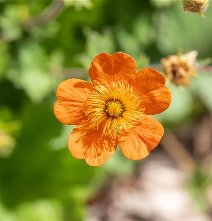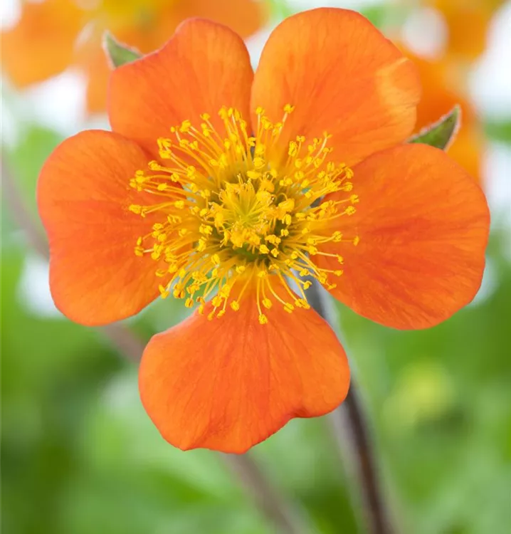 Geum coccineum 'Borisii' bildet korallenrote Blüten ab Mai. Bei richtiger Pflege Nachblüte im September.