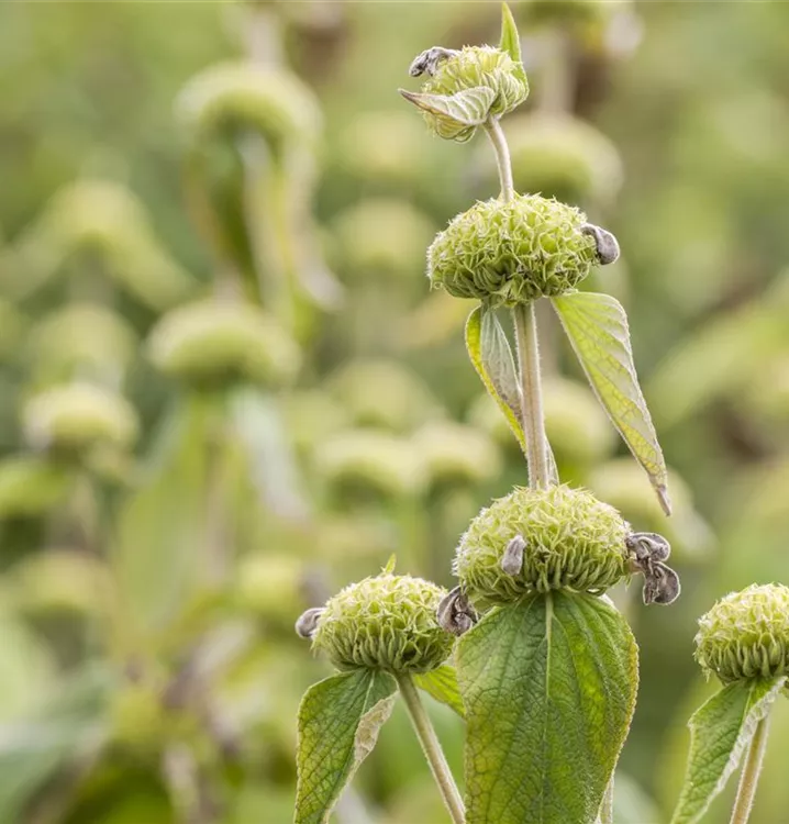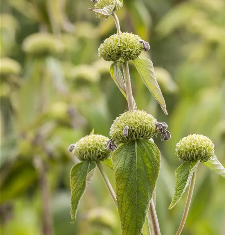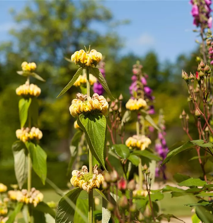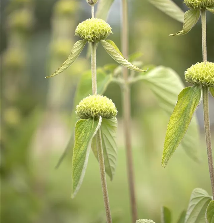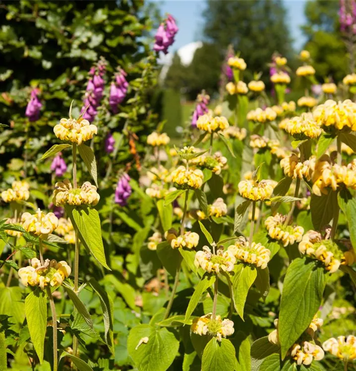 Phlomis russeliana bildet in Quirlen angeordnete, gelbe Blüten ab Juni.