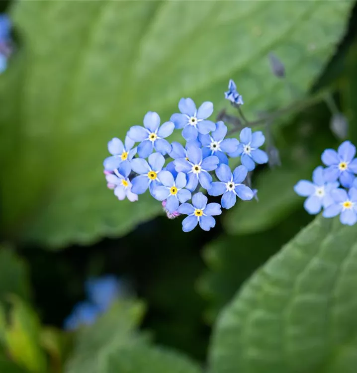 Hoher Blattschmuckwert. Die sommergrünen Blätter des Kaukasus-Vergissmeinnichts sind dunkelgrün, herzförmig.