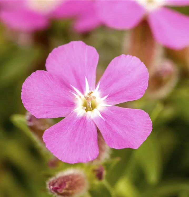 Reichblühende Polsterstaude, karminrosa Blüten in