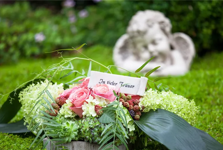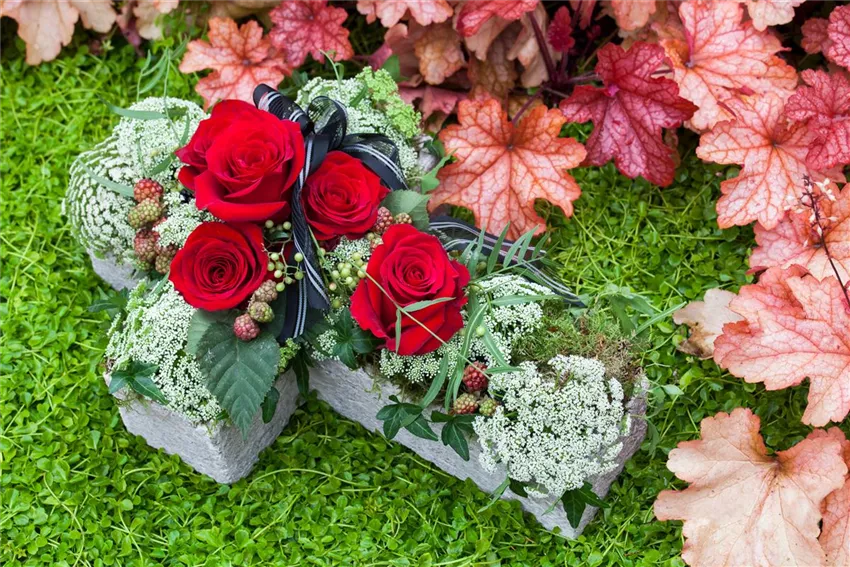 Eigentlich gibt es bei der Auswahl der Blumen auf dem Grab kein richtig oder falsch. Gepflanzt werden darf das, was persönlich gefällt oder die liebsten Blumen des Verstorbenen waren. Wer wenig Zeit für die Grabpflege hat, oder weiter weg wohnt, der kann auf Bodendecker zurückgreifen. Die sorgen vor allem bei anhaltender Hitze im Sommer dafür, dass das Grab nicht vertrocknet und unschön aussieht. Bodendecker sind langsam wachsend und kommen den ein oder anderen Tag ohne frisches Wasser aus. Dazu passen dann im Sommer eigentlich alle Blumen, die Saison haben. Wichtig ist, dass die Pflanzen keine allzu hohen Ansprüche haben. Die Erde auf dem Grab ist nicht immer sehr nährstoffreich und deshalb eignen sich Mauerpfeffer, Königskerzen, Schafgarbe oder Wolfsmilch sehr gut. Sie kommen gut mit trockenen und sandigen Böden zurecht.